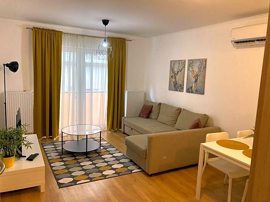 This air-conditioned apartment consists of 1 living room, 1 separate bedroom and 1 bathroom with a bath or a shower. Guests can make meals in the kitchen that is equipped with a stovetop, a refrigerator, a dishwasher and kitchenware. Featuring a balcony with city views, this apartment also provides a washing machine and a flat-screen TV with cable channels. The unit offers 2 beds.
